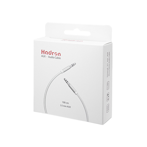کابل انتقال صدا استریو Hadron مدل HTC–AX1 ،در دو رنگ سفید و مشکی ارائه می گردد. این کابل جهت ارتباط صوتی دستگاه های دارای رابط جک 3.5 میلی متر مناسب می باشد. این محصول با طول 100 سانتی متر و روکش پلیمر TPE عرضه شده که مقاومت بالایی نسبت به کشیدگی و تنیدگی دارد و همچنین سطح خارجی کابل با روکش بافته شده نایلون 6.6 پوشانده شده که که استحکام این کابل را افزایش می دهد.