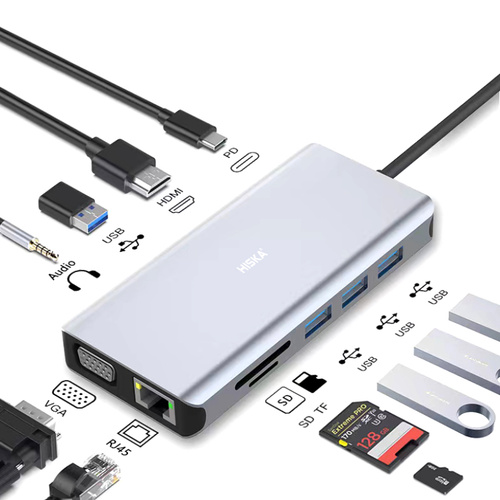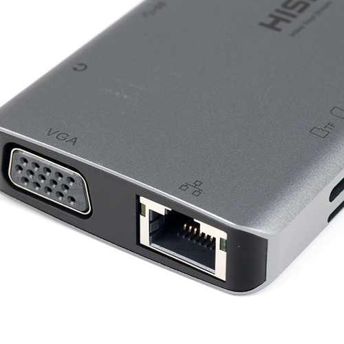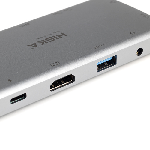 با پیشرفت تکنولوژی و استفاده از طراحی های بروز شده، شاهد نازک تر شدن هر چه بیشتر لپتاپ ها هستیم. این به تنهایی یک ویژگی مثبتی به شمار می رود زیرا لپتاپ های قدرتمند، نازک طراحی شده و دارای وزن سبکتر نسبت به قبل بوده و قابلیت حمل بالایی دارند. از این رو با نازک تر شدن لپتاپ ها، تعداد پورت های موجود در لپتاپ ها نیز کاهش یافته است برای مثال در مک بوک های اپل از سال 2016 تا الان، با بروز شدن زبان طراحی مک بوک ها، شاهد عدم پشتیبانی از پورت های رایج مثل HDMI، USB و... هستیم. شرکت هیسکا، از تولیدکنندگان مطرح لوازم جانبی، با ارائه هاب 11 پورت مدل HR-55 ، مشکل کمبود پورت در لپتاپ ها را تا حد زیادی حل کرده است. هاب آداپتور 11 در 1 تایپ سی هیسکا HR-55، دارای 4 خروجی USB 3.0، یک خروجی HDMI، یک خروجی تایپ سی برای شارژ سریع PD، یک خروجی RJ45 شبکه، دو خروجی SD Card و TF Card، یک جک 3.5 میلی متری صدا و درنهایت یک خروجی تصویر VGA می باشد. بدنه این هاب از آلیاژ آلومینیوم بوده و از کیفیت ساخت بسیار بالایی برخوردار است. هاب آداپتور 11 در 1 تایپ سی هیسکا دارای یک خروجی تایپ سی با قابلیت شارژ سریع PD می باشد. توسط این خروجی، می توان مک بوک پرو یا سایر دستگاه های پشتیبانی کننده از شارژ سریع را در کمترین زمان ممکن شارژ کرد. توان شارژ این خروجی 100 وات می باشد. این هاب دارای یک درگاه شبکه RJ45 با پشتیبانی از سرعت شبکه 1000M می باشد. وقتی در مواقع ضروری، به اینترنت پایدار دسترسی ندارید و اینترنت بیسیم پاسخگوی نیاز شما نمیباشد، بهترین راه حل، استفاده از کابل شبکه برای تجربه اینترنت پرسرعت با اتصال پایدار می باشد. خروجی های USB 3.0 از اکثر دستگاه های یو اس بی نظیر فلش درایو ها، هارد دیسک ها، پرینتر و.. پشتیبانی می کنند. همچنین به لطف تکنولوژی USB 3.0، سرعت انتقال دیتا حداکثر 5 گیگابایت بر ثانیه می باشد. همینطور برای نمایشگر های نسل قبل که از VGA پشتیبانی می کنند یک درگاه در نظر گرفته شده تا این نیاز برطرف شود. همچنین با اتصال این هاب به موبایل و وصل کردن یک کابل HDMI به یک نمایشگر بزرگتر، می توان محتوای موبایل را در یک نمایشگر مجزا و بزرگتری تجربه کرد.این هاب بسیار کاربردی قابلیت راه اندازی در اکثر دستگاه های دارای تایپ سی را دارند. همچنین این هاب با تمام سیستم عامل های موجود سازگار می باشد.