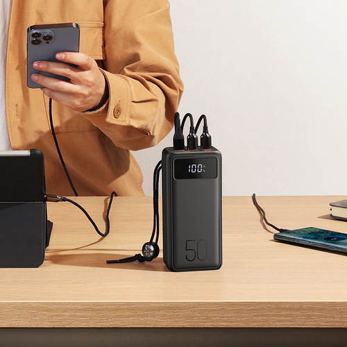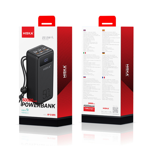 خیلی از فروش‌ها از حالت سنتی خارج شده‌اند و به صورت کاملا دیجیتال درآمده‌اند. به همین دلیل شغل‌های جدید زیادی وارد عرصه شده‌اند و این شغل‌ها به گونه‌ای با گوشی و لپ‌تاپ وابسته هستند که شاغلین چنین شغل‌هایی باید همیشه گوش به زنگ باشند و برای جلوگیری از اتمام باید شارژ از یک پاوربانک باکیفیت استفاده کنند تا نیازشان را به خوبی برآورده نماید. پاوربانک HISKA HP-510PD 50000mah Powerbank 22.5W Fast Charge توسط کمپانی هیسکا طراحی و تولید شده است که دارای بدنه‌ای بسیار مقاوم در برابر آسیب و ضربه می‌باشد. ابعادی برابر با 159*73*54 میلی‌متر داشته و وزن آن 1058 گرم است. دارای یک بند کنفی بسیار زیبا است که یک قطب نما نیز به آن متصل شده است و به راحتی می‌توانید آن را حمل نمایید. این محصول برای انواع لوازم‌های برقی از قبیل گوشی، تبلت، پنکه دستی و ... قابل استفاده می‌باشد. شارژر همراه هیسکا نه تنها برای شارژ دستگاه‌هایتان قابل استفاده است بلکه در کمپ‌های شبانه هم می‌تواند به عنوان یک چراغ‌قوه بسیار کاربردی عمل کند. روی بدنه آن در بخش پشتی یک چراغ LED تعبیه شده که دارای نور مناسب در دو حالت برای استفاده در تاریکی است. با توجه به شدت جریان 22.5 وات و پشتیبانی از فناوری‌های شارژ سریع PD3.0 و QC3.0 در نیم ساعت باتری دستگاه را به 50% می‌رساند و با آیفون‌های X و 11 و 12 و سایر اسمارت فون های جدید سازگار است. دارای چهار خروجی است که سه‎ تای آن‌ها را USB و یکی را Type-C تشکیل داده و امکان شارژ همزمان چهار دستگاه را برایتان فراهم کرده است. ورودی آن هم Type-C با شدت جریان DC 5V=3A 9V/2A 12V/1.5A می‌باشد. باتری از جنس لیتیوم پلیمر برای آن درنظرگرفته شده که از ظرفیت بزرگ 50000 میلی‌آمپر برخوردار است. گواهینامه‌های CE / FCC / RoHS را هم گذرانده است. مکانیزم حفاظتی بالایی هم برای آن درنظر گرفته شده تا از شارژ اضافه و داغ شدن بیش از حد پاوربانک جلوگیری به عمل بیاید و با توجه به چیپ هوشمند به کار رفته در دل آن هم شارژی بهینه و درست را برای دستگاه شما به ارمغان می‎‌آورد.
