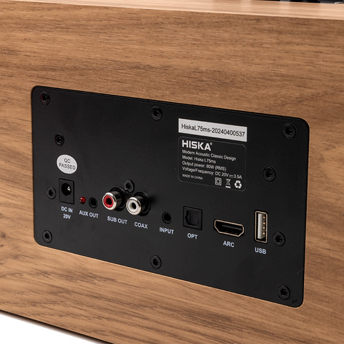 لوکس ، اصیل و خوش صدا سه تا کلمه ای هستش که میشه در وصف این مدل گفت ؛ اسپیکرHISKA L75ms از مدل های لوکس برند هیسکا می باشد. این اسپیکر بدنه چوبی و طراحی کلاسیکی دارد. این اسپیکر در عین اینکه ظاهری کلاسیک داره باطنی مدرن و به روز داره تا خیالتون از کانکشن ها راحت باشه ، محصول از آپشن های روز بیسیم پشتیبانی میکنه و به راحتی میتونید باسیم یا بیسیم بهش وصل شید. این محصول 5.2 کیلوئه که بخش عمده وزن به خاطر متریال چوبیشه ؛ توان خروجی صدای این اسپیکر 80 واته و البته که برقیه .این محصول برای عاشقان موزیک طراحی و تولید شده که با توجه به ،به روز بودنش میتونید تمام مسئولیت های صوتی خونه رو بهش محول کنید و دوستانتون رو دعوت به شنیدن صدای این اعجوبه کنید . در این اسپیکر دو ووفر 4 اینچی و دو تیوتر 0.75 اینچی چیده شده تا به بهترین شکل ممکن از موزیکتون لذت ببرید . بر خلاف ظاهر کلاسیکش براتون حسابی تدارک دیده و وقتی پشت محصول رو نگاه میکنید ، شگفت زده میشید که پورت HDMI arc دیگه کامل کاملش میکنه و اونجا پورت های خاصی مثل OPT و جک 3.5 هم هست تا دیگه به هرچی خواستید وصلش کنید و البته بلوتوث که خیلی راحت میتونید با گوشی موبایل ، بلوتوث لپ تاپ یا تلوزیونتون بهش وصل شید . بهتره تو این قسمت از متریال چوبیش بگیم که از چوب MDF بسیار با کیفیت استفاده شده و کاملا حس خوب منتقل میکنه و مخصوصا برای طرفدارای چوب و محصولات چوبی . این طراحی فقط ظاهری نبوده و این باکس میتونه کاملا مثل سازها صدا رو براتون آکوستیک پخش کنه و روی قسمت جلویی هم یه محافظ براتون در نظر گرفته شده تا اگر خواستید کلاسیک تر به نظر برسه و مثل اسپیکر های قدیمی بشه کافیه که اونو در بیارید تا درایو ها رو از نزدیک ببینید.