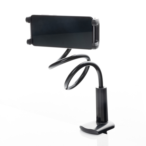 استندهای گوشی‌ و تبلت یکی از کاربردی‌ترین ابزار برای کاربران گوشی‌های هوشمند و تبلت‌ها هستند. این ابزار به ویژه برای کاربرانی که مدت‌های طولانی با گوشی و تبلت به تماشای ویدئو یا وب‌گردی مشغول هستند بسیار کارآمد خواهد بود. چرا که باعث می‌شوند افراد بدون زحمت نگه داشتن طولانی مدت گوشی یا تبلت بتوانند از آن‌ها استفاده کنند. یکی از انواع پایه نگهدارنده که هیسکا طراحی و تولید کرده است مدل HK-2016، این پایه به لبه میز یا لبه سطح مورد نظر قفل می‌شود. به این ترتیب ضمن کاربری ساده هیچ بخشی از فضای مفید کاربران را اشغال نخواهد کرد. انتهای پایه ثابت این استند طراحی پیچی دارد. کاربران با پیچاندن انتهای پایه می‌توانند دهانه پایه استند را متناسب با اندازه ضخامت میز یا لبه سطح مورد نظر باز کنند. با قرار دادن دهانه پایه روی لبه میز کافی است کاربران دومرتبه پیچ را بپیچانند تا بسته شده و محل قرارگیری پایه روی میز محکم شود. همچنین بخش ابتدایی هولدر قسمت خرطومی پلاستیکی دارد که به راحتی تغییر شکل می‌دهد، خم می‌شود و به حالت مورد نظر کاربران تبدیل می‌شود. در نتیجه کاربران متناسب با قد، زاویه دید و حالت نشستن خود می‌توانند آن را از هر قسمتی که می‌خواهند خم کنند و شکل دهند. در پشت دهانه کشویی پایه نیز یک قسمت توپی شکل وجود دارد و زاویه چرخش 360 درجه امکان چرخاندن گوشی به هر سمت را برای کاربران فراهم می‌کند.