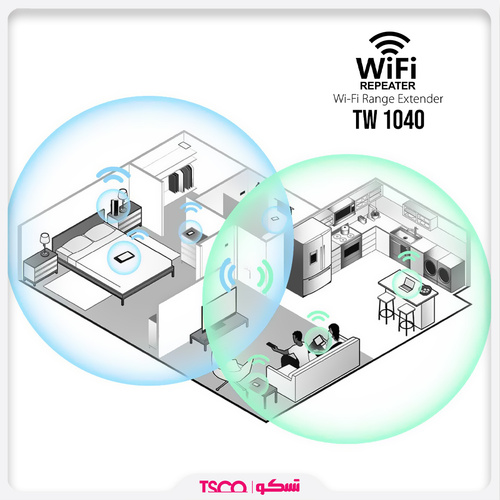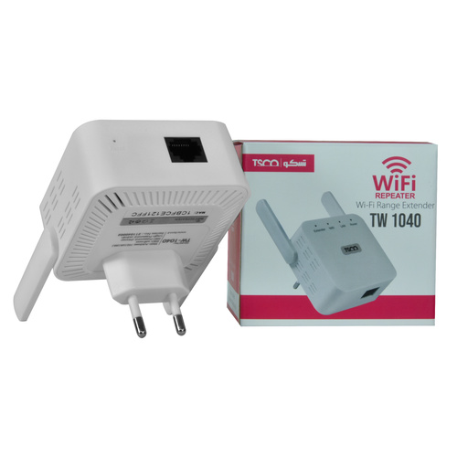 کاربرد اصلی توسعه دهنده بیسیم تسکو مدل TW 1040 ایجاد شبکه وای فای است که دارای ورودی پورت LAN است که در ابعاد 82×72×74 میلیمتر و وزن 78 گرم و دارای استاندارد های CE.FCC,ROHS است. توسعه دهنده بیسیم تسکو TW 1040 در محدوه 20m Indoor, 50m Outdoor پشتیبانی میکند، که محدوده سرعت این کالا 11n: Up to 300Mbps 11g: Up to 54Mbps ,11b: Up to 11Mbps است. ریپیتر روتر وایرلس TW 1040 تسکو توانایی ساپورت 13 کاربر را دارد که فرکانس وای فای 2.4GHZ را ارسال میکند. چیپست به کار برده شده در این کالا QCA9533 است. کاربران اینترنتی با مشکلی با عنوان «نقطه کور» (Dead Zone) روبهرو می باشند که به آنها اجازهی دسترسی به شبکهی وایرلس داده نمیشود. برای رفع این مسئله و مشکل دور بودن از روتر، شما میتونید از دستگاهی به اسم ریپیتر روتر بیسیم تسکو (Wi-Fi Range Extender) استفاده کنید. اکستندر تسکو با دریافت اینترنت از روتر و انتشار دوبارهی آن به نقاط دورتر، شبکهی وای فای شما رو گسترش میدهد و تقویت میکند. اکستندرها بهراحتی نصب و آماده به کار میشوند.برای استفاده از آن ها کافی است نقطهی مناسبی رو پیدا کنید و دستگاه را به برق وصل کنید و بهکمک قابلیت WPS آن را با روتر هماهنگ کنید. با این کار، سیگنالهای وای فای به نقاط دورتری میرسد و مکانهایی که قبلا تحت پوشش شبکه نبودند، می توانند به آن متصل شوند. ضمن اینکه نقاط کور شبکه هم با استفاده از رنج اکستندر به امواج نسبتا قویتری دسترسی پیدا میکند. مهمترین نکتهای که رنج اکستندر TW 1040 تسکو رو به وسیلهای ارزشمند تبدیل میکند، انتقال اینترنت به نقاط دورتر بدون نیاز به کابلکشی مجدد است.