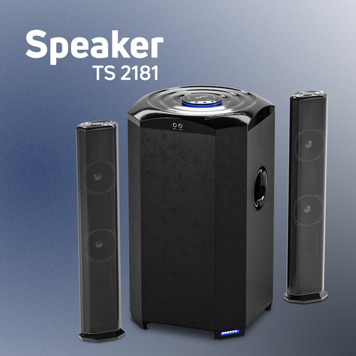 از ویژگی‌های برجسته TS 2181 می‌توان به نوع اتصال آن اشاره کرد که به کاربر اجازه می‌دهد با دستگاه‌ها و روش‌ها مختلف متصل شود. از جمله این روش‌های اتصال مختلف می‌توان به بلوتوث، USB، AUX IN و میکروفن اشاره کرد. همچنین این اسپیکر قابلیت اتصال به رادیو را نیز دارد. این اسپیکر از فناوری بلوتوث نسخه 5.3 بهره می‌برد که به کاربران دستگاه‌های مختلف اجازه می‌دهد تا باقدرت و سهولت بالا متصل شوند. برای استفاده از این اسپیکر نیازی به نصب نرم‌افزار ندارید. برای این کار تنها کافی است با روشن‌کردن بلوتوث اسپیکر و دستگاه موردنظر خود و برقراری اتصال از عملکرد فوق‌العاده دستگاه لذت ببرید. برد اتصال بلوتوث آن نیز حدود 15 متر است. همچنین، TS 2181 از اتصال‌های دیگری از جمله میکروفن، USB و AUX IN نیز پشتیبانی می‌کند این تنوع در ارتباط‌ها به کاربر امکان می‌دهد بهترین روش ارتباط را با دستگاه موردنظر را انتخاب و از آن استفاده کند. این اسپیکر با یک کابل برق 100-240 ولت تغذیه می‌شود. از مزایای این اسپیکر بلوتوثی کاهش مصرف انرژی آن است. با جود باتری‌های باکیفیت، این اسپیکر هنگام استفاده از بلوتوث برق کمی مصرف می‌کند. با این اسپیکر می‌توانید چندین ساعت بدون وقف و نگرانی بابت کاهش شارژ باتری به پخش موسیقی بپردازید و از اوقات فراغت خود نهایت لذت را ببرید. یکی دیگر از ویژگی‌های مهم این اسپیکر، توان خروجی آن است. با توان اسمی P.M.P.O 16000 این اسپیکر قادر به تولید صدای قدرتمند و باکیفیت با ولوم بالا است. این ویژگی به کاربر امکان پخش موسیقی باکیفیت بالا و تجربه گوش سپردن به صدایی متمایز می‌دهد. با این توان این اسپیکر یکی از قوی‌ترین و بهترین اسپیکرهای سه‌تکه موجود در بازار است. به‌علاوه توان واقعی این اسپیکر RMS 2x20+80W،است. امروزه بیشتر برنده‌های موجود در بازار تلاش می‌کنند تا اسپیکرهای قدرتمندی به بازار ارائه کنند. اسپیکرهایی که هم کیفیت و هم قدرت صدای بالایی داشته باشند. اما در میان اسپیکرهای هم رده TS 2181 اسپیکری با توان واقعی 120، یک اسپیکر بی‌رقیب است. با وجود پشتیبانی از فرمت‌های صوتی مختلفی نظیر MP3، MP2، WAV، WMA و FLAC شما انعطاف گسترده‌ای در انتخاب موسیقی دارید. به‌علاوه این اسپیکر دو پورت ورودی میکروفن دارد که اجرای هم‌زمان را ممکن می‌کند.