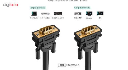 سایر توضیحاتدارای کانکتورهای 15 پینی نر در هر دو طرف مناسب برای اتصال دستگاه های تصویری پشتیبانی کننده از درگاه VGA دارای کابل بسیار مقاوم و ضخیم 800x600 SVGA, 1024x768 XGA, 1600x1200 UXGA, 1080p Full HD, 1920x1200 WUXGA Mirror Mode, Extended Mode VGA 15 pin male-male