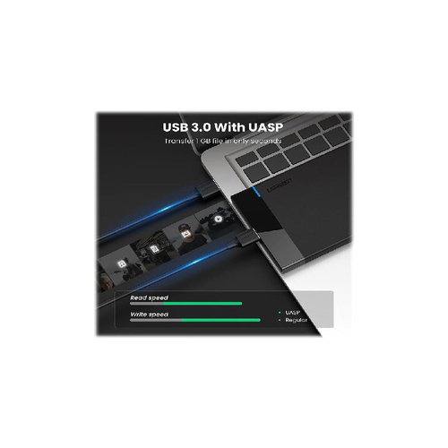 قاب هارد اکسترنال 2.5 اینچ یوگرین مدل US221-30848 محصولی از شرکت «یوگرین» (UGREEN) است . بدنه این محصول از پلاستیک ABS ساخته شده است که از استحکام خوبی برخوردار است. این قاب به صورت کشویی باز میشود ، به این ترتیب برای قرار دادن هارد در آن نیازی به استفاده از پیچ نیست . قاب هارد اکسترنال 2.5 اینچ یوگرین مدل US221-30848 علاوه بر هارد دیسکها از حافظههای SSD هم پشتیبانی میکند . برای استفاده از این قاب حافظه کافی است که هارددیسک 2.5 اینچی با ضخامت حداکثر 9.5 میلیمتری خود را در محل تعبیه شده قرار دهید وبه کمک درگاه USB آن را به رایانه خود متصل کنید. با استفاده از این محصول میتوانید حافظههای با ظرفیت بالا را خریداری کرده و از این طریق آنها را به هارد اکسترنال تبدیل کنید . گفتنی است این محصول در برابر جریان ، ولتاژ و حرارت بیش از حد محافظت شده است . برای محافظت بیشتر از HDDها و SSDها درون این قاب از کوسنهای اسفنجی استفاده شده که میتواند کاملا موثر و تاثیرگذار باشد.