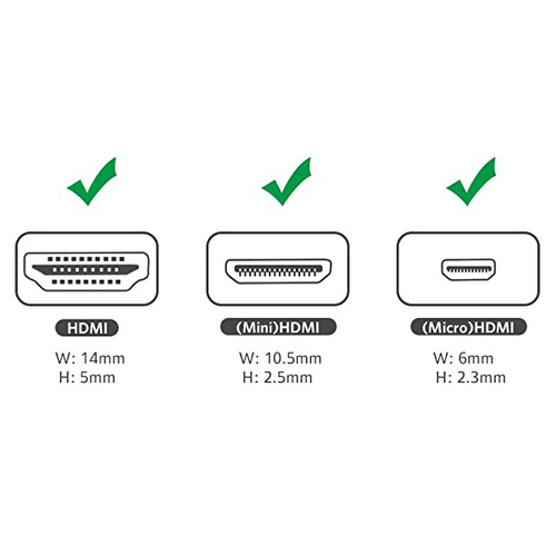 سازگار با بسیاری از دستگاه های تلفن همراه، دستگاه های تلفن همراه مورد علاقه خود را به خروجی های HDMI متصل کنید، برخی از دوربین های فیلمبرداری و دوربین های دیجیتال جدیدتر مجهز به کانکتور mini HDMI برای پشتیبانی از محتوای با وضوح بالا هستند، برخی از تلفن های هوشمند و تبلت های جدید مجهز شده اند.