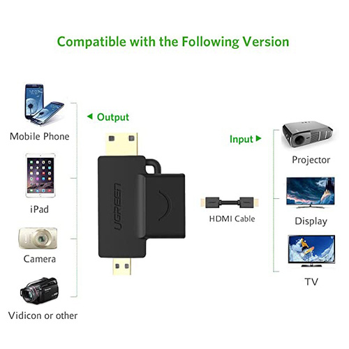 مبدل Micro HDMI و Mini HDMI به HDMI یوگرین مدل HD129 به شما اجازه میدهد که یک کابل HDMI را برای قرار دادن در یک درگاه Mini HDMI یا Micro HDMI در تلفن هوشمند، لپ تاپ، دوربین فیلمبرداری، دوربین عکاسی یا تبلت برای اتصال به تلویزیون HD استفاده کنید. سازگار با بسیاری از دستگاه های تلفن همراه، دستگاه های تلفن همراه مورد علاقه خود را به خروجی های HDMI متصل کنید، برخی از دوربین های فیلمبرداری و دوربین های دیجیتال جدیدتر مجهز به کانکتور mini HDMI برای پشتیبانی از محتوای با وضوح بالا هستند. این مبدل حداکثر 1080P 60Hz