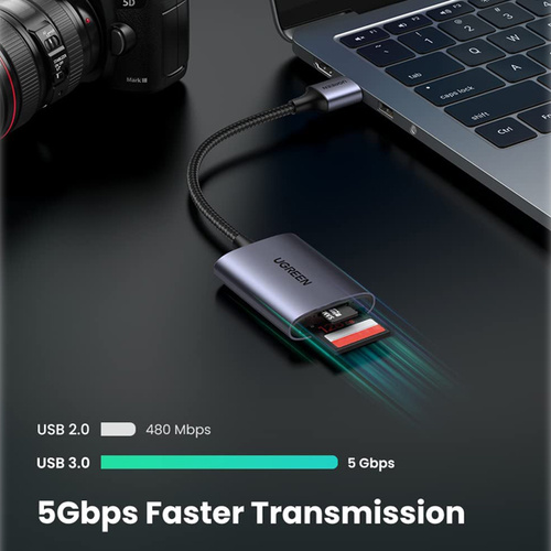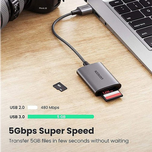 کار خوان یوگرین مدل CM401-80887 دارای یک خروجی USB 3.0 و دو ورودی TF/SD 3.0 Card Slot میباشد. این دستگاه قابلیت plug and play دارد یعنی نیازی به نصب برنامه جهت استفاده نیست و میتواند دیتای شما را تا سرعت 90 مگابیت بر ثانیه انتقال دهد و از دیگر نکات مثبت این دستگاه میتوان به استفاده همزمان دو اسلات اشاره نمود.
