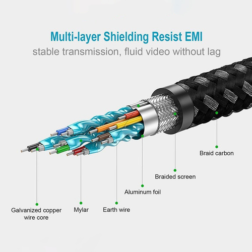 کابل 2.0 HDMI برند UGREEN مدل 50108 به طول 2 متر و دارای روکش بافت کنفی بسیار مقاوم می باشد. ورژن این کابل 2 می باشد و از تصاویر 4k به آسانی پشتیبانی میکند. جنس سر سوکت ها فلزی و با روکش طلا پوشانده شده اند و جنس استفاده شده داخل کابل نیز مس و شیلددار می باشد و از این جهت تصویری کاملا بدون نویز به کاربر ارائه میکند. سرعت انتقال اطلاعات در این کابل 18 گیگابیت بر ثانیه و نرخ سیگنال 60 هرتز را انتقال می دهد. از این کابل میتوان برای اتصال کلیه دستگاه های دارای پورت HDMI که لزوروشن بالایی دارند مانند دستگاه های ایکس باکس و پلی استیشن استفاده نمود.