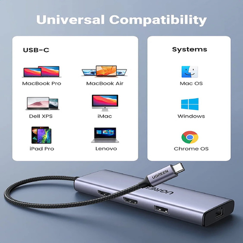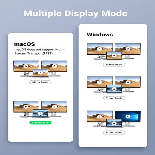 امکانات و قابلیتهاxInput: USB Type CxOutput: 2xUSB 3.0 A Female, 1xUSB2.0, 2xHDMI, 1xRJ45 Gigabit, 1xTF slot, 1xSD slotxUSB 3.0 standard, speed up to 5Gbps, compatible with USB 2.0/1.1xEach HDMI port supports maximum 4Kx2K@60Hz; When using two HDMI ports at the same time, the product supports dual4K@30Hz output (Windows) or dual
