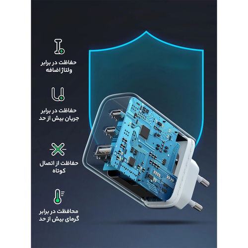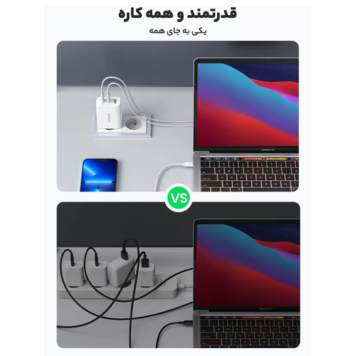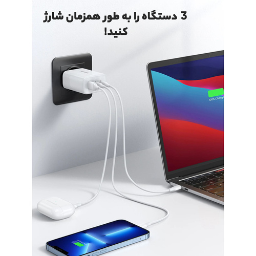 شارژر دیواری 65 وات با دو پورت USB-C و یک پورت USB-A یوگرین مدل CD275 کد 90496 یک شارژر قدرتمند و همه کاره است. از این کلگی شارژر برای شارژ تعداد زیادی از دستگاه‌ها از جمله گوشی‌های هوشمند، تبلت‌ها و لپ‌تاپ‌ها می‌توان استفاده کرد. این شارژر از فناوری های شارژ سریع (فست شارژ) پشتیبانی می‌کند. پورت USB-C1 از توان خروجی 65 وات برای شارژ سریع PD پشتیبانی می‌کند. پورت USB-C2 می‌تواند دستگاه‌های شما را با توان 30 وات شارژ کند. پورت USB-A می‌تواند دستگاه‌ها را با توان 18 وات شارژ کند. شارژر دیواری یوگرین با دو پورت USB-C و یک پورت USB-A از فناوری‌های شارژ سریع PD و QC پشتیبانی می‌کند که می‌تواند دستگاه‌های شما را به سرعت و کارآمد شارژ کند. شارژر دیواری 65 وات یوگرین مدل CD275 دارای چندین ویژگی ایمنی از جمله محافظت در برابر اضافه بار، گرم شدن بیش از حد و اتصال کوتاه است که از دستگاه‌های شما در برابر آسیب محافظت می‌کند.